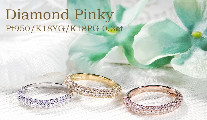 pt950/K18YG/K18PG ピンキーリング ダイヤモンド パヴェ【0.3ct】