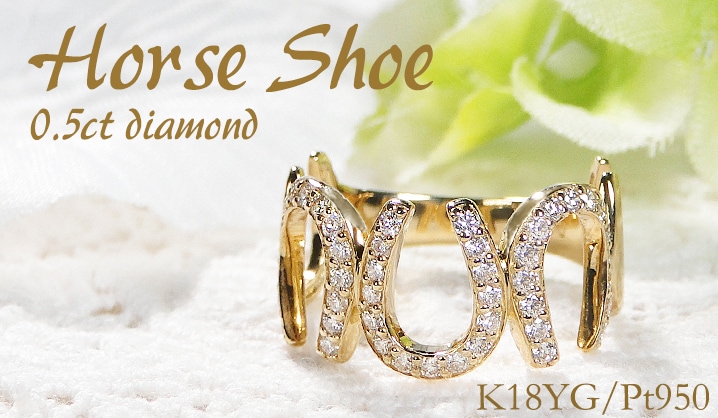 |Pt950/K18YG 馬蹄 天然ダイヤモンド リング【0.5ct】